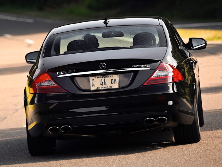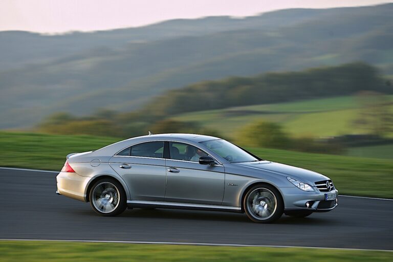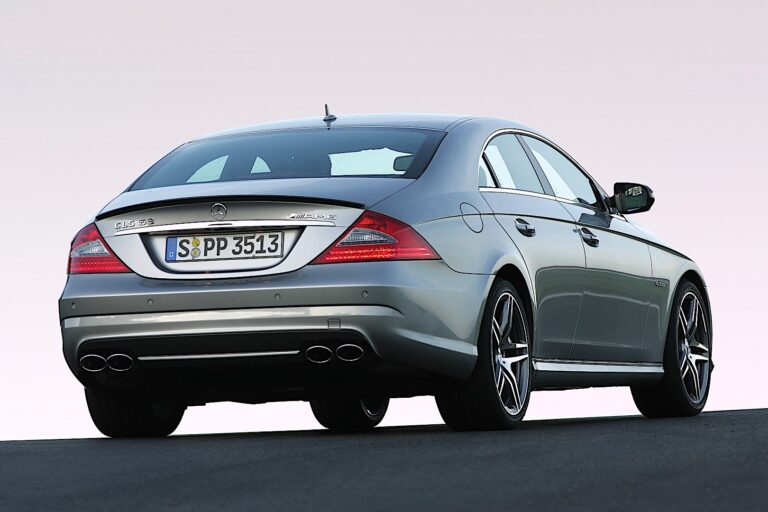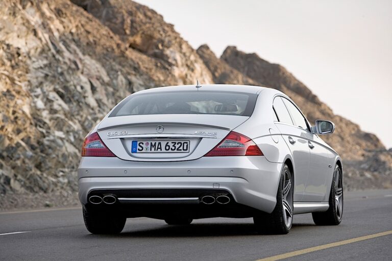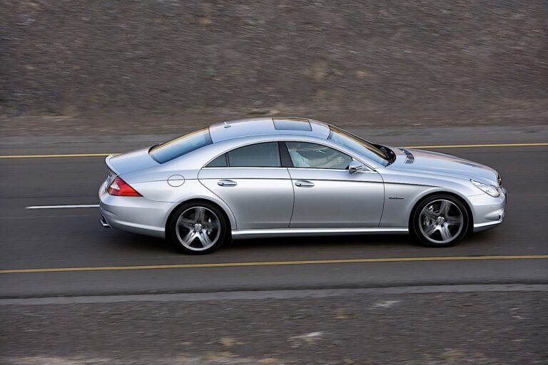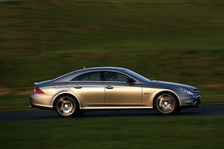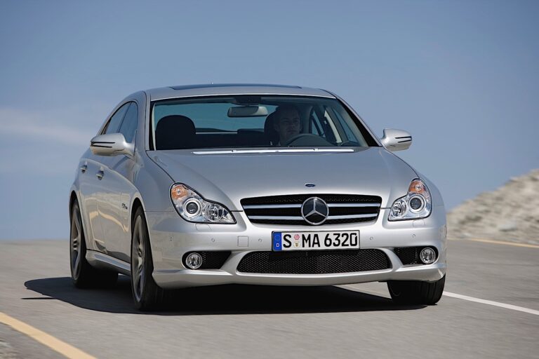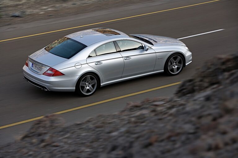 Pierwsza generacja CLS była dla klientów relacją miłości i nienawiści. Mercedes-Benz zainstalował parę nietypowych reflektorów oraz płynne linie nadwozia, które kończyły się opadającym tyłem. Dodatkowo, drzwi nie miały ramki dla szyb, przez co pojazd można było określić mianem czterodrzwiowego coupe. W wersji AMG, samochód miał unikalne oznaczenia 6.3 na przednich błotnikach. Z tyłu, producent zamontował cztery chromowane owalne rury, które wystawały spod tylnego zderzaka, flankując dyfuzor.