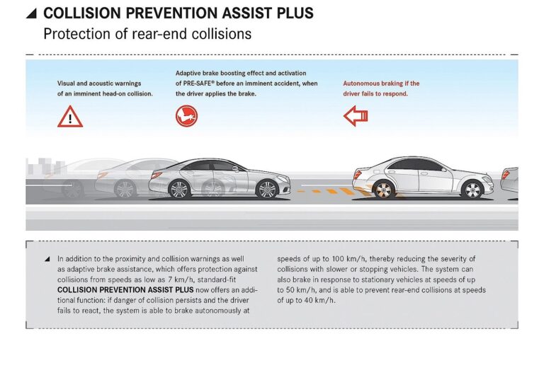 Aby zapewnić najwyższą klasę bezpieczeństwa dostępnego dla wszystkich, klasa CLS w przyszłości będzie wyposażona w szereg nowych systemów wspomagających, obok istniejących systemów wzbogaconych o nowe funkcje. Standardowe wyposażenie obejmuje COLLISION PREVENTION ASSIST PLUS, który może pomóc w zapobieganiu kolizjom tylnym – jeśli zajdzie taka potrzeba, poprzez autonomiczne hamowanie.