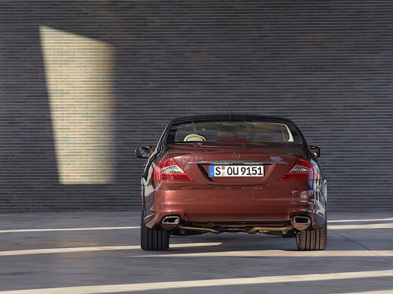 Widok z boku dominuje nowymi, atrakcyjnie stylizowanymi kołami ze stopów lekkich, o średnicy 17 cali (CLS 280, CLS 320 CDI i CLS 350 CGI) lub 18 cali (CLS 500). Z tyłu nowej generacji CLS wyróżnia się nowym zderzakiem tylnym, nowymi lampami tylnymi oraz zmodyfikowanymi końcówkami wydechu. Centralna część tylnego zderzaka opada teraz głębiej, a dodatkowy kontur chwytający światło wzdłuż niego podkreśla wrażenie szerokości. To wrażenie jest wzmacniane przez końcówki wydechu w kształcie trapezu, które wcześniej były owalne. Technologia LED została wprowadzona do tylnych lamp: lampy hamulcowe, tylne i kierunkowskazy korzystają z diod LED, które reagują bardzo szybko. Podobnie jak kierunkowskazy w zewnętrznych lusterkach, tylne kierunkowskazy również wyglądają jak strzały, gdy się zaświecają, co jest szczególnie uderzające w nocy. Tak samo jest z włóknami optycznymi po bokach, które są zawsze aktywowane, gdy włączone są reflektory mijania. Nowa funkcja dezaktywacji reflektorów mijania po wyłączeniu zapłonu pomaga zoptymalizować zarządzanie energią.