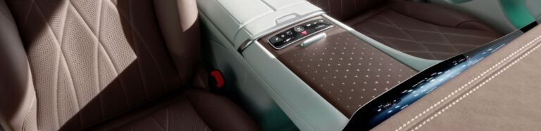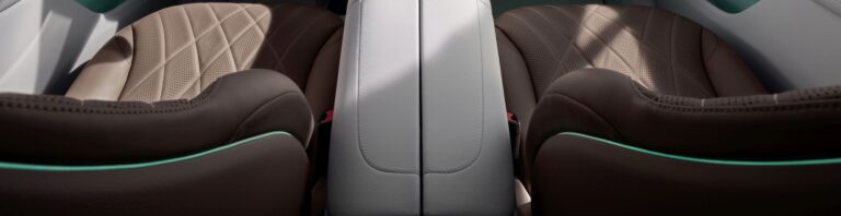 Pas wentylacyjny z kokpitu wizualnie przechodzi w przednie drzwi. Pływający zestaw sterujący z wbudowanym otwieraczem drzwi i kontrolami siedzeń przejmuje funkcjonalną interpretację dawno czysto dekoracyjnych elementów. Panel środkowy drzwi rozwija się w zmysłowym, dynamicznym ruchu z powierzchni pionowej do poziomej i w ten sposób bezproblemowo integruje podłokietnik. Przednia część podłokietnika zaprojektowana jest jako metalowy element hi-tech, który można wykorzystać jako luźno osadzony uchwyt i zawiera przełącznik okna elektrycznego. W ciemności ta pływająca, awangardowa estetyka robi szczególne wrażenie dzięki koronie światła ambientowego.