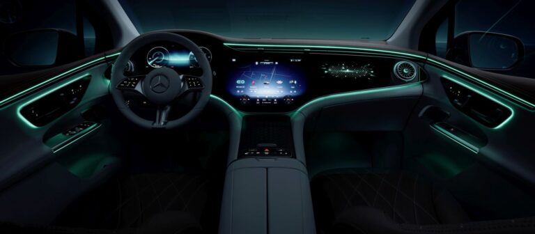 Został opracowany specjalny scenariusz powitania i pożegnania dla modeli Mercedes-EQ, który jest również skoordynowany z oświetleniem ambientowym.