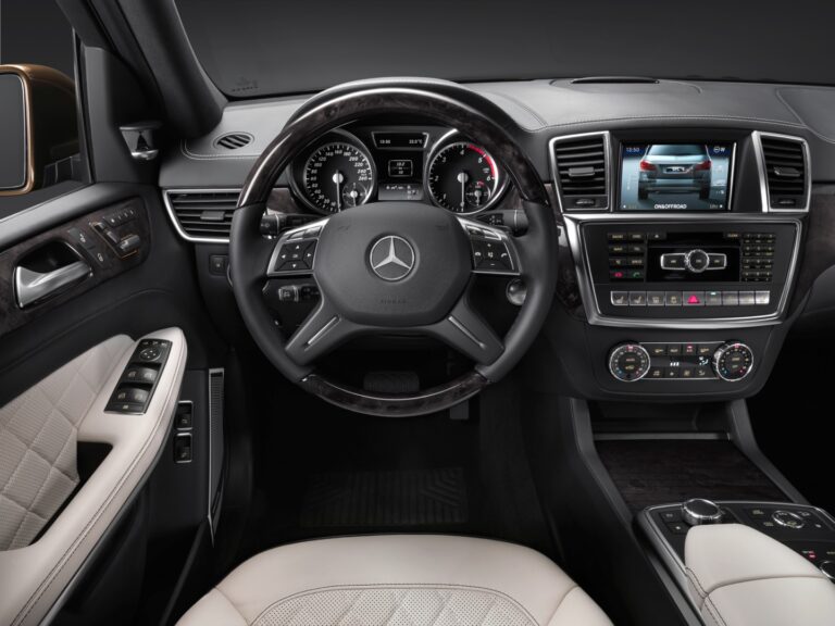 Deska rozdzielcza pokryta skórą ARTICO kontynuuje optyczny nacisk na szerokość wnętrza pojazdu. Dwa nowoczesne okrągłe zespoły wskaźników są czytelne i łatwe do odczytania, a pomiędzy osłonami wskaźników duży 12,2 cm (4.8 cali) wyświetlacz kolorowy o fotorealistycznej jakości ma bardzo atrakcyjny, wysokiej jakości urok. Obok nich środek deski rozdzielczej jest zdominowany przez duży główny kolorowy ekran COMAND. Koncepcja obsługi i wyświetlania ma niezaprzeczalne zalety dla użytkownika: Infotainment, nawigacja i komunikacja mogą być używane łatwo i bardzo prosto za pomocą kontrolera COMAND umieszczonego na konsoli centralnej w metalowej obudowie. Standardowy wielofunkcyjny zestaw wskaźników pokryty skórą nappa ma przyciski zmiany biegów i 12 przycisków o różnych funkcjach.