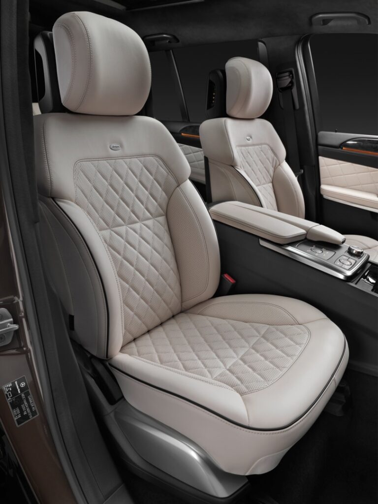 Elegancka i dynamiczna dekoracja wnętrza, wysokiej jakości materiały i duża dbałość o szczegóły, perfekcyjna ergonomia oraz przestronność – wnętrze Klasy GL przekazuje poczucie dobrego samopoczucia typowe dla marki Mercedes-Benz. Rozbudowane elementy wykończeniowe wykonane z różnych rodzajów drewna lub aluminium, elementy sterujące w srebrnym chromie oraz tapicerka z perforowanej sztucznej skóry ARTICO z dekoracyjnymi przeszyciami w kontrastowym kolorze podkreślają ogólne wrażenie wysokiej jakości. Rozkład siedzeń 2-3-2 zapewnia wystarczającą ilość miejsca dla siedmiu pasażerów.