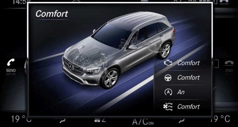 Nowe funkcje w GLC to standardowa funkcja uruchamiania KEYLESS GO z przyciskiem start-stop w wyglądzie turbiny oraz możliwość aktywacji systemów wspomagania kierowcy na wyświetlaczu multimedialnym. Użytkownik wybiera i aktywuje tryby jazdy za pomocą przełącznika DYNAMIC SELECT na środkowej konsoli. Wyświetlacz multimedialny pokazuje różne tryby jazdy zgodnie z danym wyposażeniem. Kierowca może wybierać spośród różnych prekonfigurowanych oraz jednego indywidualnego trybu jazdy. W zależności od układu napędowego i wariantu zawieszenia, dostępnych jest od pięciu do siedmiu trybów jazdy. Oprócz „Komfort”, „ECO”, „Sport”, „Sport +” i „Indywidualny” do dostosowania układu kierowniczego, zawieszenia lub układu napędowego, pakiet inżynieryjny off-road oferuje dwa tryby „Off-Road” i „Off-Road +”.