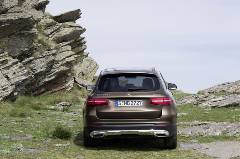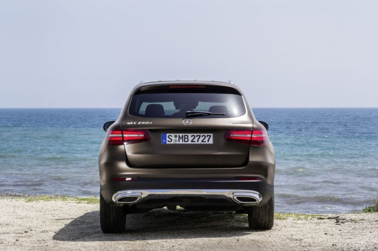 Sportowy charakter kontynuuje się w tylnej części z całkowicie zmienionym zderzakiem i końcówkami wydechu. Nowo zaprojektowane tylne lampy LED również zapewniają niepowtarzalną sygnaturę świetlną – z charakterystycznymi blokami SUV-ów Mercedes-Benz w wersji z podświetlonymi krawędziami. Całościowo język designu tylnej części podkreśla potężny charakter generacji GLC, nie ostatni z powodu konstrukcji zderzaka z końcówkami wydechu i chromowaną osłoną podwozia w typowym dla SUV designie.