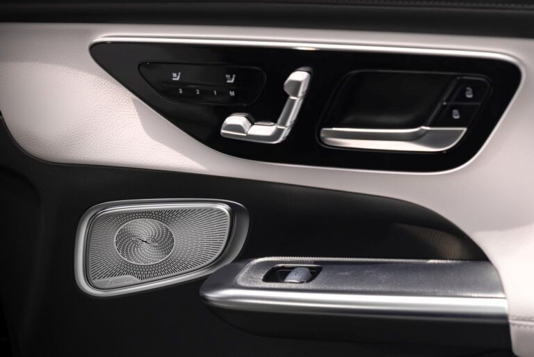 System dźwiękowy Burmester®, specjalnie skonfigurowany dla GLC przez tego specjalistę dźwiękowego. Posiada łącznie 15 premium głośników: siedmiu 50-watowych głośników średniotonowych, cztery 20-watowe głośniki wysokotonowe, dwa 20-watowe głośniki 3D i dwa premium głośniki basowe z przodu o mocy 120 watów każdy. Wzmacniacz 15-kanałowy aktywnie napędza wszystkie głośniki z łączną mocą 710 watów. Ponadto wysokiej jakości ustawienia dźwięku, optymalizacja za pomocą cyfrowego procesora sygnałowego, indywidualne ustawienia dźwięku i stopniowe działanie ożywiają system. Metalowe siatki głośników noszą litery Burmester®.