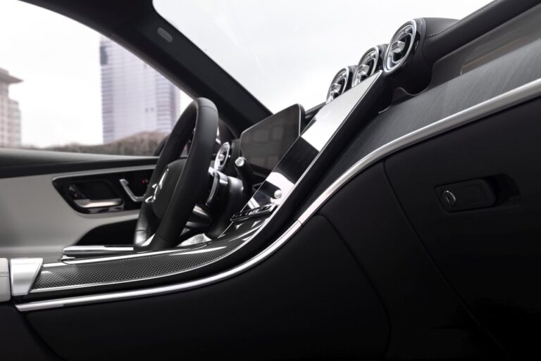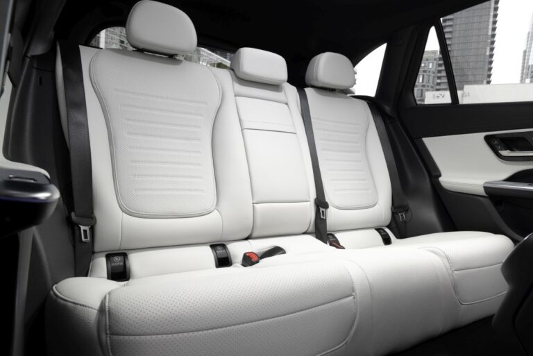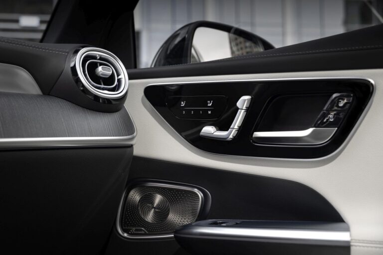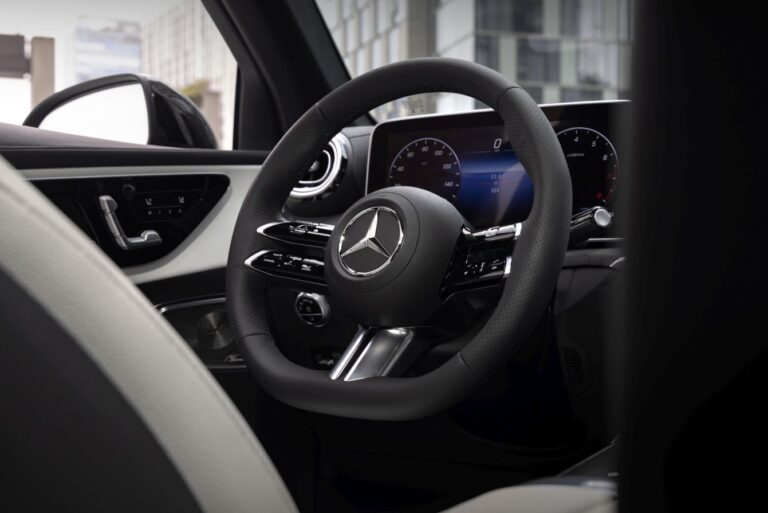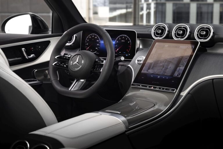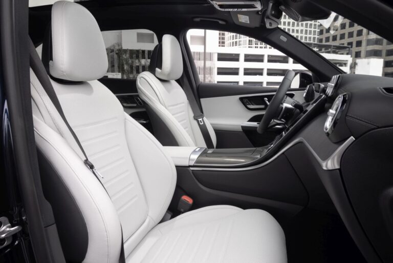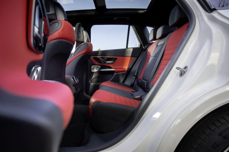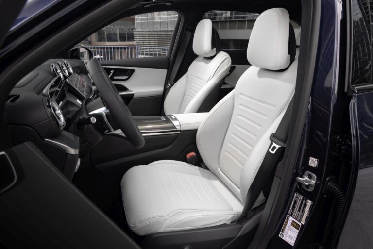Avantgarde design siedzeń nowego GLC bawi się warstwami i konturowymi powierzchniami, nadając im wizualną lekkość. Oparcia głowy i ich połączenie z oparciem zostały przeprojektowane. Nowy GLC jest dostępny z deską rozdzielczą pokrytą skórą z pasami przypominającymi nappa (opcjonalnie, standard w linii AMG). Niektóre elementy wykończenia mają innowacyjne powierzchnie. Należą do nich nowe interpretacje otwartych fornirów w odcieniach brązu oraz otwarty fornir z czarnego drewna z drobnymi, formującymi wstawkami z prawdziwego aluminium. Na życzenie bezpośrednie oświetlenie otoczenia z przewodami świetlnymi zastępuje standardowe pośrednie oświetlenie otoczenia.