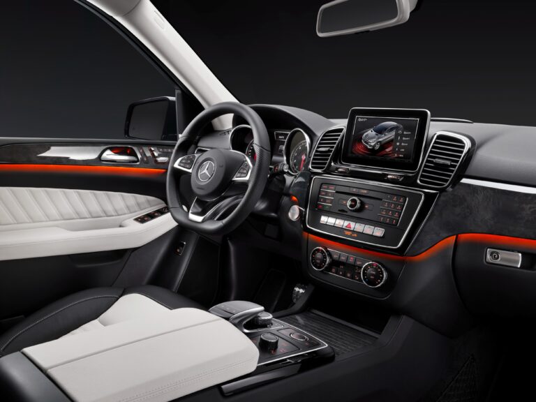 Wnętrze wyróżnia się większym wyświetlaczem multimedialnym, który jest teraz częściowo zintegrowany z panelem wskaźników. Środkowe wloty powietrza obok wyświetlacza oraz zewnętrzne wloty powietrza są otoczone eleganckimi srebrnymi ramkami. W połączeniu z czarną, błyszcząca obwódką podkreśla to wyszukany design wnętrza. Konsola centralna zawiera kontroler COMAND z touchpadem umieszczonym powyżej w optymalnej pozycji ergonomicznej.
