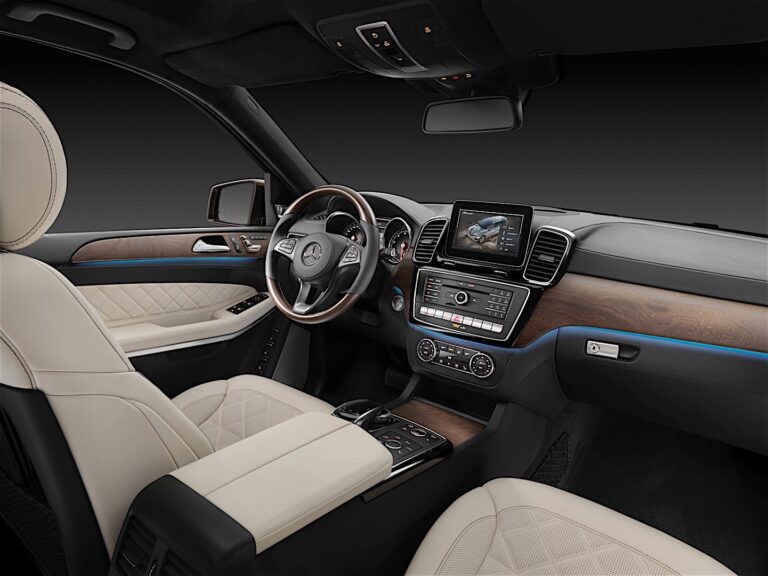 W kabinie, model GLS z 2016 roku wyposażony był w nowo zaprojektowaną, wielofunkcyjną kierownicę z trzema ramionami. Jednostka infotainment miała 8-calowy monitor zamontowany w konsoli środkowej. Nowy system oferował opcjonalny COMMAND online oraz touchpad.