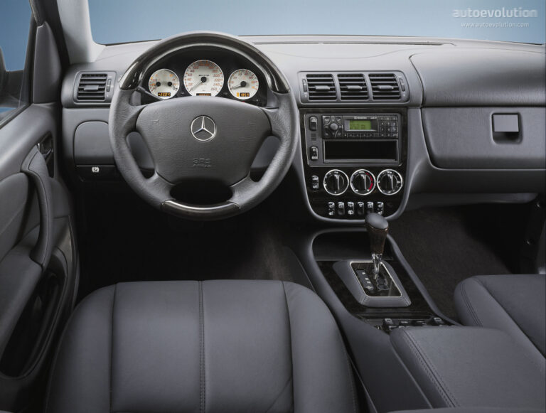 W środku model ML wzbogacono elementami z innych samochodów Mercedes-Benz, takimi jak kierownica, deska rozdzielcza, przyciski i kontrolki. W modelu ML 55 AMG zastosowano luksusowe fotele sportowe z pokryciem z bawolej skóry, otoczone ciemno-brązowym wykończeniem z orzecha włoskiego i welurowymi dywanikami. Standardowe wyposażenie obejmowało również reflektory ksenonowe, elektrycznie sterowany przesuwany dach oraz system audio MB Audio 30.