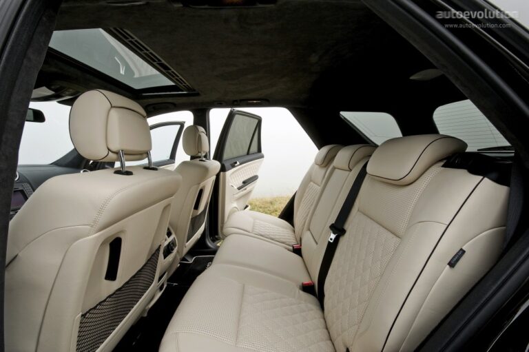 Nowe ergonomiczne koło kierownicy AMG wyróżnia się w praktycznym, wysokiej jakości wnętrzu ML 63 AMG: perforowana skóra zdobi szczególnie uformowany obszar chwytu, a dolne dwa ramiona mają wstawki w kolorze srebrnym. Nowe aluminiowe łopatki zmiany biegów AMG pozwalają kierowcy na ręczną zmianę biegów. Jako opcja dostępny jest również kokpit wykończony skórą nappa.