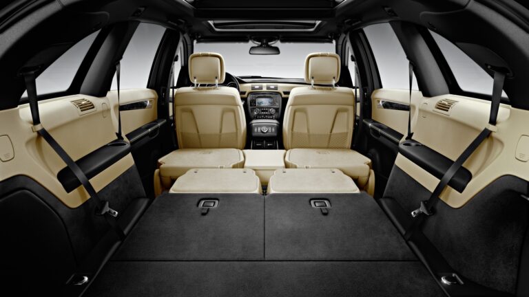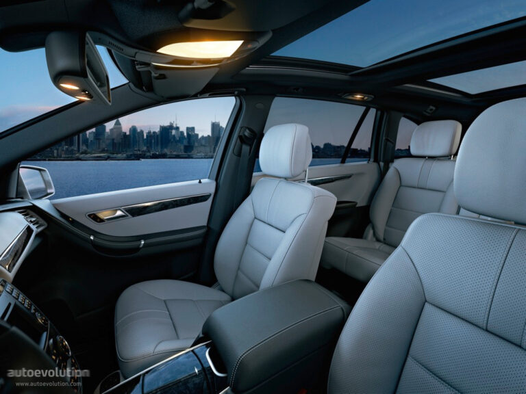 Przestrzeń zapewniona za przednimi fotelami jest na tyle obszerna, że możliwe jest jednoczesne zainstalowanie trzech fotelików dziecięcych. Jeśli wymagane są tylko cztery siedzenia, środkowy zagłówek można złożyć, aby służył jako podłokietnik. Alternatywnie, wersja sześciomiejscowa standardowo wyposażona jest w konsolę zamiast środkowego siedzenia. To również pozwala Mercedes R-Class błyszczeć czterema luksusowymi fotelami indywidualnymi.