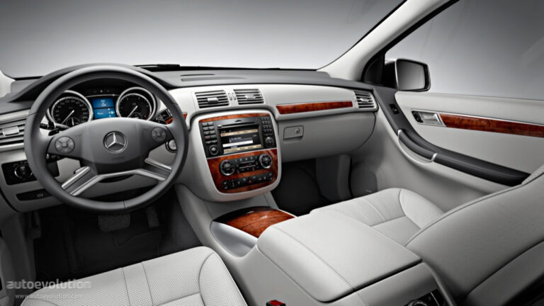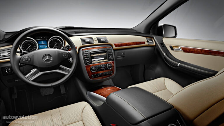 Wewnątrz, standardowa Klasa R oferowała ten sam wystrój wnętrza z sześcioma miejscami siedzącymi w trzech rzędach. Wprowadzono niewielkie zmiany na desce rozdzielczej i w zestawie wskaźników. Centrum COMMAND, które było jednostką infotainment dla Mercedes-Benz, posiadało kolorowy ekran o przekątnej 6,5 cala i mogło być obsługiwane za pomocą pokrętła umieszczonego między przednimi fotelami.