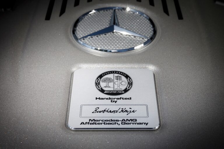 Otwierając maskę, ujawnia się ekskluzywna pokrywa silnika z włókna węglowego/aluminium, co jest kolejnym dowodem wyjątkowego statusu silnika AMG V12 o pojemności 6,0 litra. Dwa logotypy AMG po lewej i prawej stronie wraz z centralnie umieszczoną gwiazdą Mercedesa tworzą trwałe wrażenie. Silnik 12-cylindrowy jest składany ręcznie w zakładzie produkcyjnym AMG zgodnie z rygorystycznymi standardami jakości zgodnie z filozofią „jeden człowiek, jeden silnik”. Oprócz potwierdzenia wyjątkowej precyzji i jakości produkcji, emblemat silnika AMG z podpisem technika silnikowego pod gwiazdą Mercedesa stanowi niezaprzeczalny dowód bezkonkurencyjnego DNA marki Mercedes-Benz w segmencie aut o wysokich osiągach.