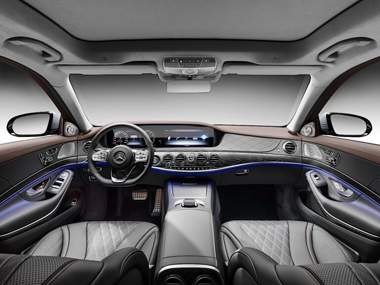 Wnętrze charakteryzowało się połączeniem skóry, prawdziwego drewna oraz nowoczesnego sprzętu, tworząc harmonijny design. Przestronne przednie siedzenia były regulowane na wszelkie możliwe sposoby. Nowa Klasa S wyróżniała się dwoma nowymi wyświetlaczami o wysokiej rozdzielczości, każdy o przekątnej 12,3 cala. Wizualnie dwa wyświetlacze pod jedną wspólną szybą zintegrowały się w panoramiczny kokpit, który zawierał duży wyświetlacz z wirtualnymi wskaźnikami w bezpośrednim polu widzenia kierowcy oraz centralny wyświetlacz nad konsolą środkową.