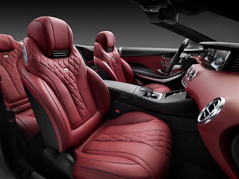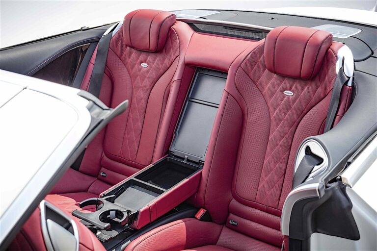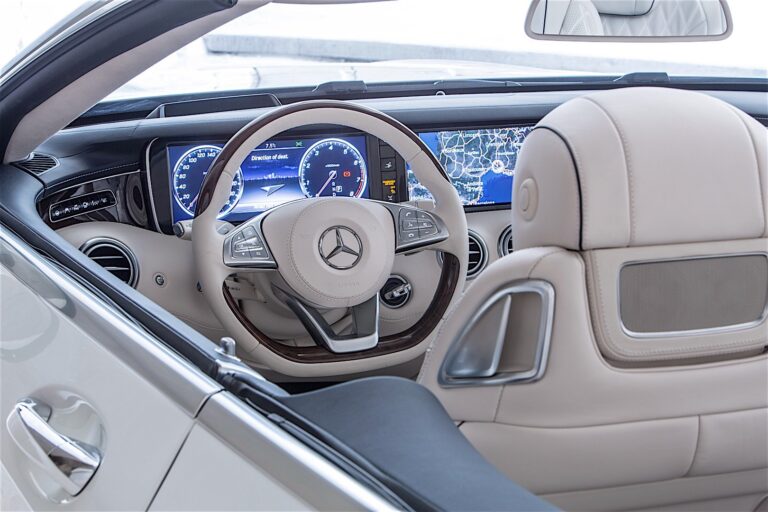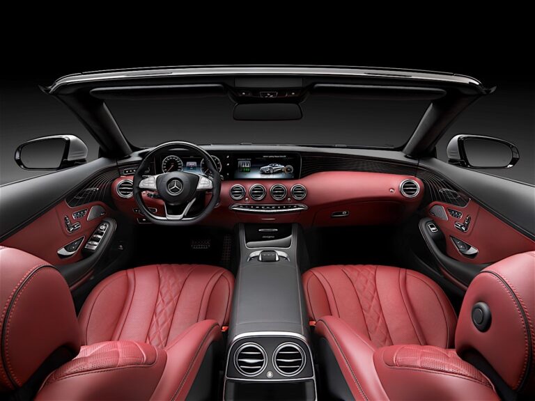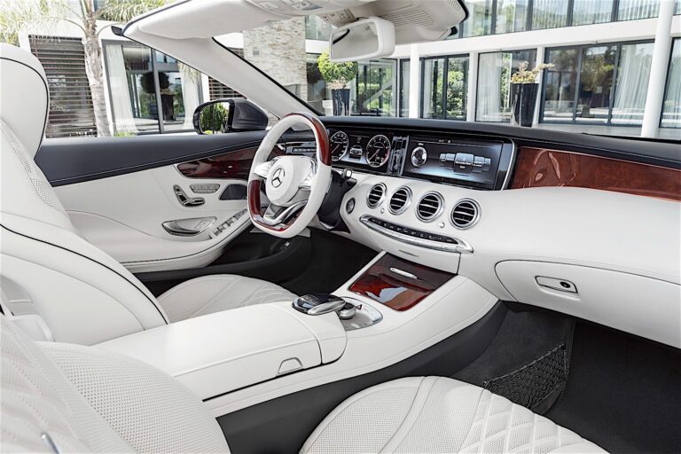 W środku S-Class Cabriolet zachwyca luksusowym, sportowym stylem oraz wysokiej jakości materiałami, tworząc wyjątkowo eleganckie wnętrze. Dach materiałowy otwiera się, tworząc przestronną przestrzeń, która emanuje atmosferą jachtu. Starannie dobrana kolorystyka i materiały oraz wysokiej jakości elementy sterujące w prawdziwym metalu lub w wyglądzie chromu podkreślają ekskluzywny charakter pojazdu. Aby umożliwić jak najszerszą możliwość personalizacji, dostępny jest wybór skór, skóry nappa lub skóry designo Exclusive nappa, a także sześć różnych koncepcji kolorystycznych wnętrza, w tym inspirującą kombinację niebieskiego głęboko morskiego i porcelany. Materiały charakteryzują się najwyższą jakością wykonania i mają charakter rękodzieła.