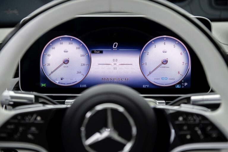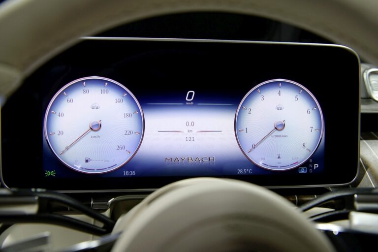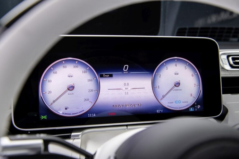 Wskaźnik ma dekoracyjną, strukturalną powierzchnię, a skala w klasycznym kroju czcionki Antiqua. Zostały zaprojektowane specyficzne dla Mercedesa-Maybacha animacje startowe dla wyświetlacza kierowcy i centralnego. Charakterystyczny wygląd wyświetlacza kierowcy w trybie wyświetlania Exclusive podkreśla szczególny status Mercedesa-Maybacha: Ramki wskaźników oraz wskazówki są w kolorze różowego złota.