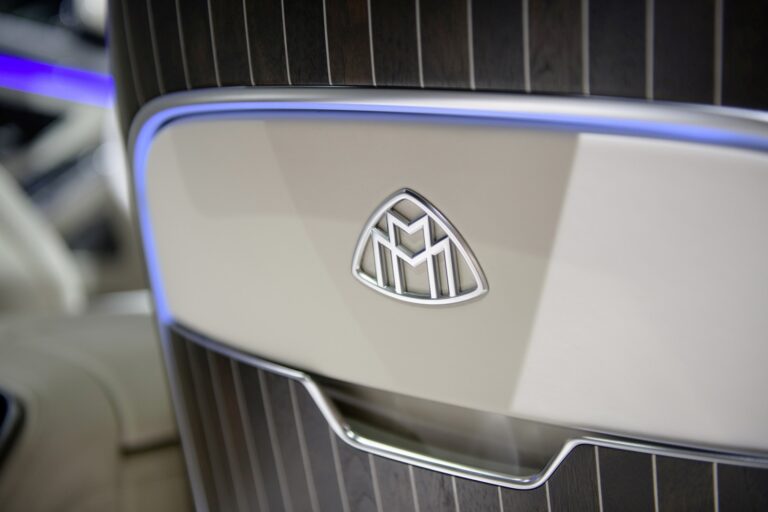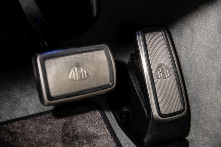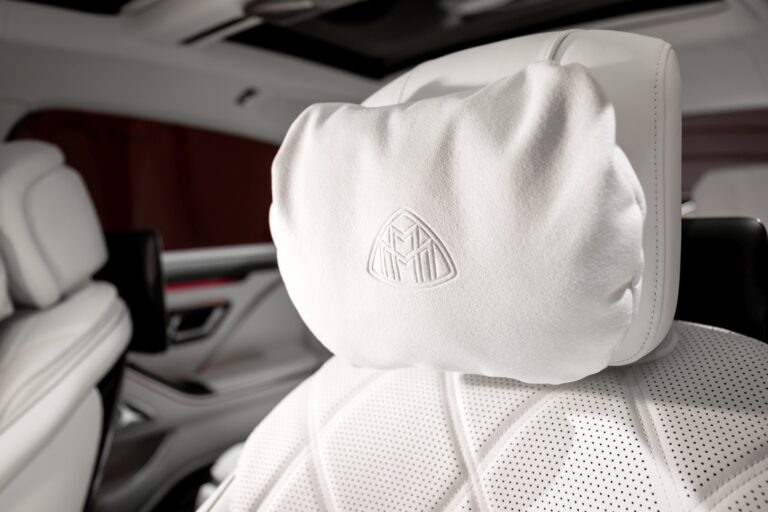 Marka Maybach ozdabia zestaw pedałów ze stali nierdzewnej, poduszki zagłówków, oparcia przednich siedzeń oraz – w połączeniu z First-Class Rear – jest również obecna pomiędzy oparciami tylnych siedzeń. Napisy marki zdobią także kierownicę i witają wszystkich pasażerów podświetlanymi progami ze stali nierdzewnej.