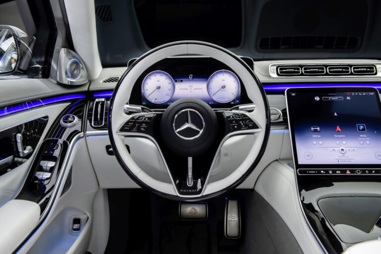 W Mercedes-Maybach Klasy S luksus cyfrowy i analogowy są w harmonii, ponieważ nowoczesna atmosfera łączy się z wysokiej jakości naturalnymi materiałami i rzemiosłem. Dostępnych jest do pięciu ekranów wyświetlacza. W standardzie znajduje się 12,8-calowy wyświetlacz OLED jako wysokotopowe centrum sterowania. Dzięki technologii OLED poszczególne piksele są samodzielnie podświetlane. Nieaktywne piksele pozostają wyłączone, co nadaje im głęboki czarny efekt. Aktywne piksele OLED świecą bardziej kolorowo niż porównywalne z LCD. Wysokie kontrasty względne to kolejna zaleta – niezależnie od kąta widzenia i warunków oświetleniowych. Na życzenie dostępny jest 12,3-calowy wyświetlacz 3D dla kierowcy z trójwymiarową reprezentacją innych użytkowników drogi oraz wyraźnym efektem głębi i cieni.