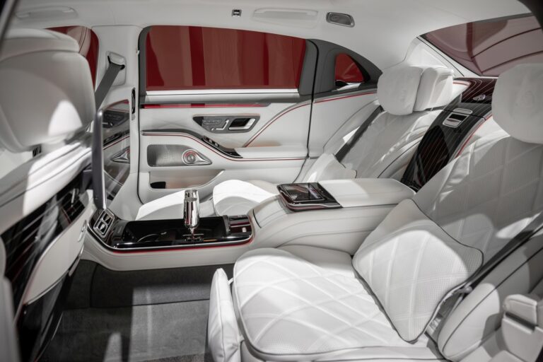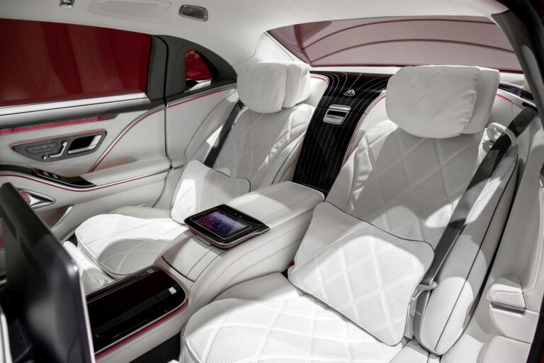 Mercedes-Maybach Klasy S ma osiemnaście centymetrów dłuższy rozstaw osi od długiego Mercedesa-Benz Klasy S: Przyrost przestrzeni w pełni korzysta z tylnej części, która oferuje jeszcze bardziej wysublimowane wyposażenie. Nowe funkcje to masaż w podparciu na łydkach w fotelu Executive oraz podgrzewana dodatkowa poduszka na zagłówkach. Tylna część First-Class została znacznie unowocześniona.