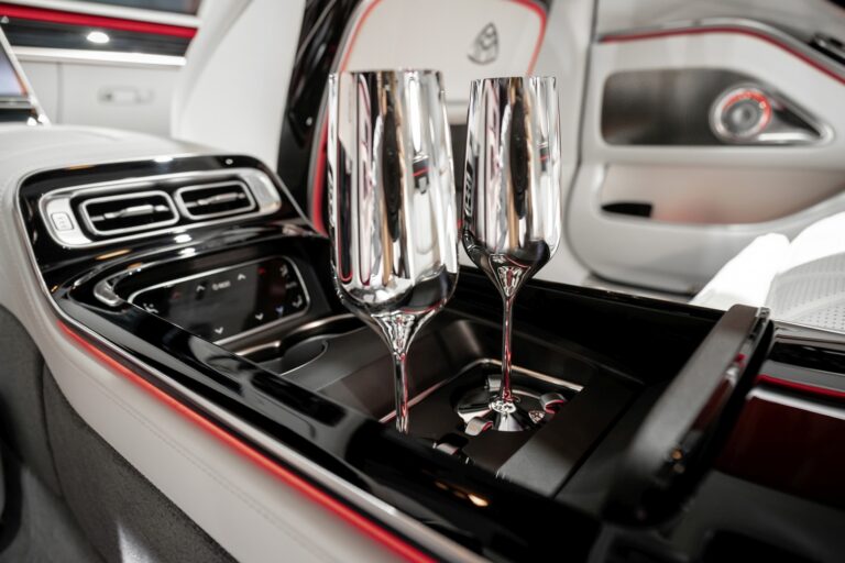 Opcjonalna chłodzona komora w tylnym podłokietniku umieszcza schłodzone napoje i jedzenie w zasięgu pasażerów z tyłu. Temperatura ustawiana jest za pomocą podświetlanego panelu sterowania. Chłodzona komora ma pojemność dziesięciu litrów i jest demontowalna. Ostatnim opcjonalnym wyposażeniem Mercedesa-Maybacha jest srebrne, podświetlane kieliszki do szampana. Dobrze dopasowany wkład w komorze przechowywania oraz dwa uchwyty w konsoli centralnej bezpiecznie trzymają kieliszki w trakcie jazdy.