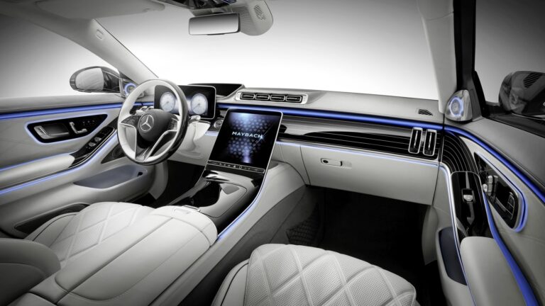 Ten kolor jest również stosowany w aktywnym oświetleniu otoczenia (opcjonalne wyposażenie), tj. animowanym świetlnym pasku LED z inteligentnymi funkcjami komfortu i bezpieczeństwa. Z różowym złotem białym i ametystowym blaskiem aktywne oświetlenie otoczenia ma teraz dwa nowe motywy kolorystyczne. Wyświetlacz powitalny „Welcome Rear” witający pasażerów specjalnym pokazem świetlnym. Adaptacyjne tylne oświetlenie ma swoją premierę w Mercedes-Maybach. Działa zgodnie z życzeniami pasażerów w kilku aspektach: poza jasnością, rozmiarem i położeniem plamy światła, można je dostosować. Jest również szeroki zakres regulacji między precyzyjnym światłem roboczym a relaksującym światłem w salonie.