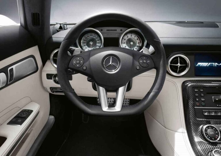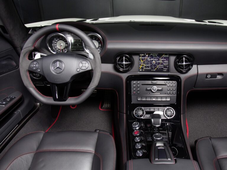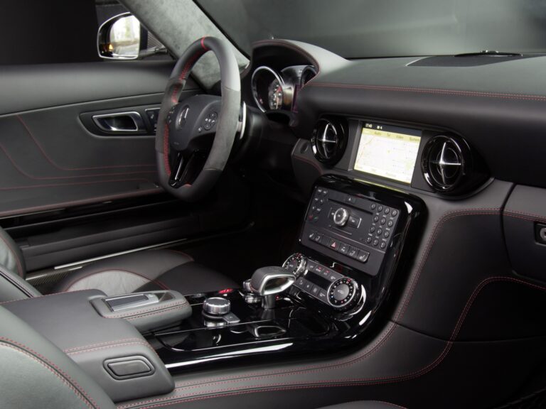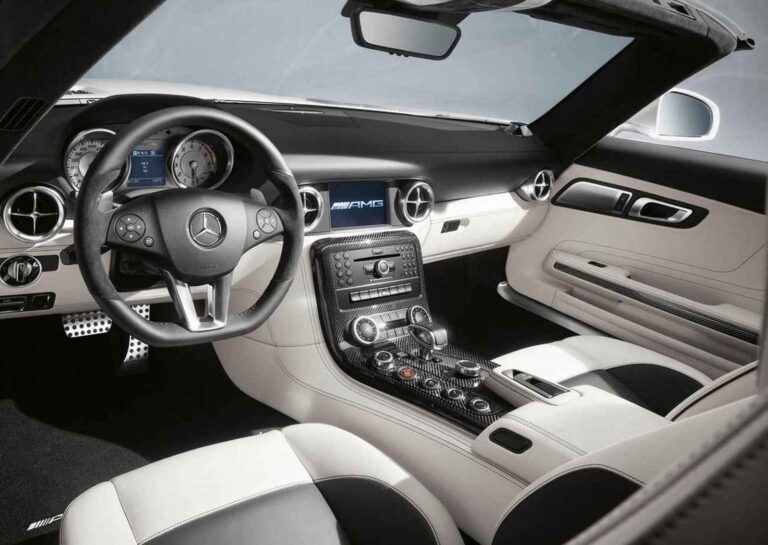 Standardowe wyposażenie Mercedes-Benz SLS AMG Roadster obejmuje czarną skórę designo, podgrzewane fotele sportowe AMG, zdejmowany szklany osłon na wietrze, COMAND z nawigacją i odtwarzaczem DVD, system alarmu przeciwdostępowego z zabezpieczeniem przed kradzieżą i monitoringiem wnętrza, automatyczną klimatyzację z podziałem na strefy oraz funkcję startu KEYLESSGO. Standardowy system AIRSCARF® dostępny wyłącznie w Mercedes-Benz działa jak niewidoczna chusta, ogrzewająca głowę i szyję pasażerów. Jest zintegrowany w oparciach foteli sportowych AMG i wydmuchuje ciepłe powietrze z otworów w zagłówkach. Przepływ powietrza można dostosować do różnych rozmiarów pasażerów za pomocą regulowanych żaluzji, a poziom ciepła można ustawić w trzech stopniach jednym naciśnięciem przycisku.