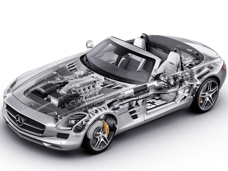 Technologiczne atrakcje SLS AMG Roadster 2012 obejmują nadwozie z aluminiowym szkieletowym układem, silnik AMG V8 o pojemności 6,3 litra umieszczony z przodu, który generuje moc 563 KM oraz moment obrotowy 479 lb-ft, siedmiobiegową skrzynię biegów z podwójnym sprzęgłem i sportowe zawieszenie z aluminiowymi wahaczami – wszystko to podniesie puls miłośników sportowych samochodów, zapewniając znakomite osiągi i przyjemność z jazdy.