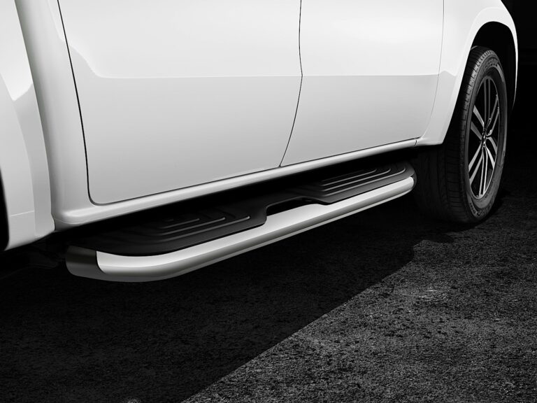 Stalowy bok – Bok ze stopniem nadaje X-Class jeszcze bardziej wytrzymały charakter i ułatwia wsiadanie oraz wysiadanie bez ryzyka poślizgu. Mogą być obciążane do 150 kilogramów, a średnica rur wynosi 76 milimetrów. Bok jest dostępny w polerowanej stali lub malowanej na czarno. Jeśli chodzi o design, bok i bar stylizacyjny są doskonale dopasowane – dla spójnego ogólnego wyglądu. Bok będzie dostępny na początku 2018 roku.
