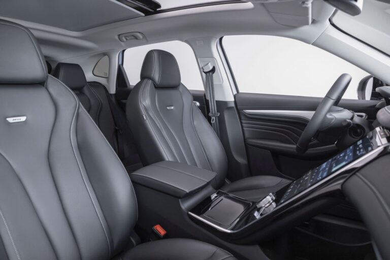 Wnętrze pojazdu wyposażono w duży, 19.4-calowy ekran dotykowy jako centralny element, z kilkoma fizycznymi przyciskami na dole oraz 12.3-calowym cyfrowym zestawem wskaźników.