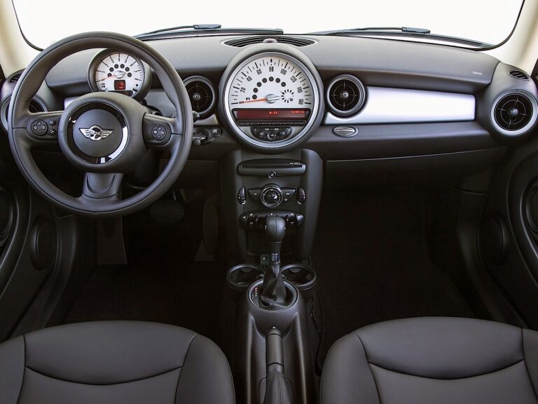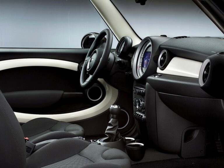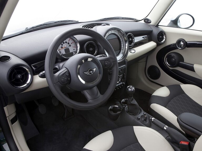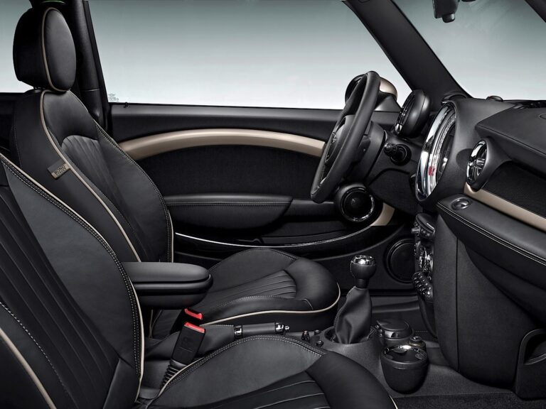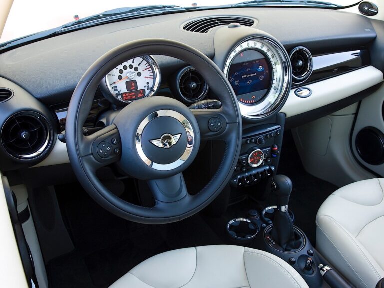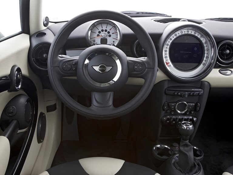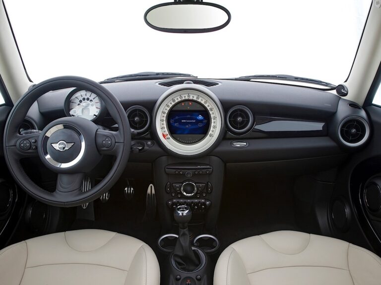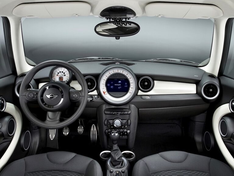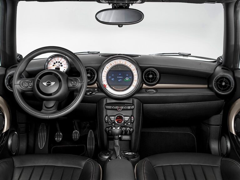 Wnętrze odznaczało się premium wyglądem, dzięki wysokiej jakości materiałom oraz retro-designowi z dużym prędkościomierzem na środku deski rozdzielczej i małym obrotomierzem przed kierowcą. Przyciski na centralnej konsoli przypominały te z klasycznych samolotów lub wyścigowych samochodów. Pojazd był dostępny w kilku wersjach, ściśle związanych z silnikami: Cooper, Cooper S i John Cooper Works, przy czym ten ostatni był najsilniejszy.