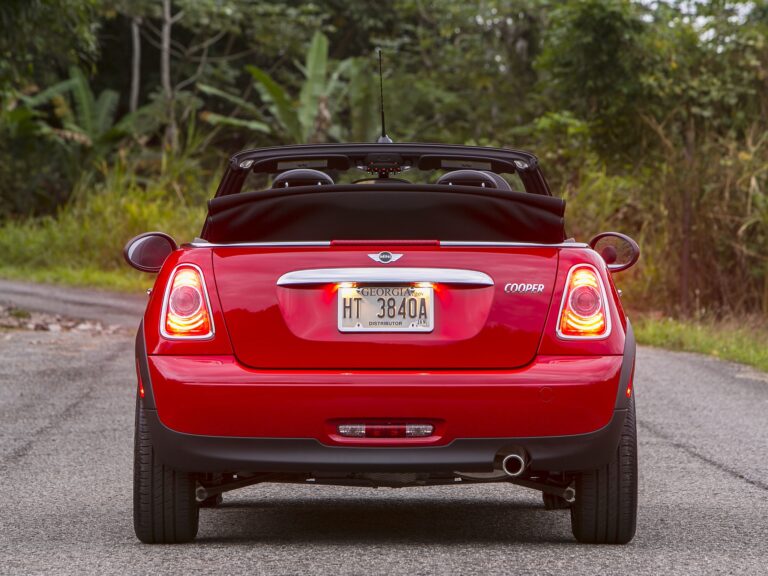 Pionowe lampy tylne, nieco większe niż te w poprzednim modelu, są wkomponowane w chromowane obramowania jak klejnoty. Szczególnie sportowy charakter MINI Cooper S Cabrio podkreśla podwójny układ wydechowy, duży wlot powietrza w tylnej zderzaku oraz dwuczęściowa lampa przeciwmgielna.