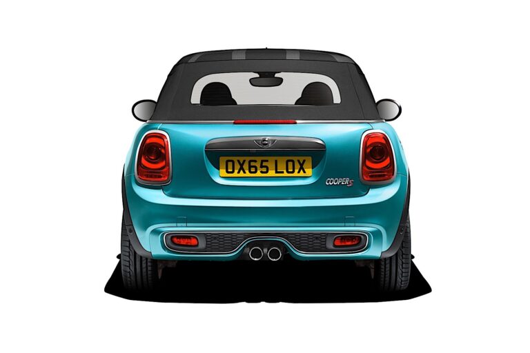 Sportowa elegancja jest również widoczna z tyłu nowego MINI Convertible. Duże, wyprostowane tylne światła są umieszczone daleko na zewnątrz i mają chromowane otoczki. Razem z mocnym paskiem uchwytu klapy bagażnika powyżej uchwytu na tablicę rejestracyjną, wyraźnie uformowanym zderzakiem oraz rozszerzeniem nadwozia ku dołowi definiują typowy wygląd marki z perspektywy tyłu. Z tej perspektywy nowy MINI Cooper S Convertible można zidentyfikować po dwóch centralnie umieszczonych rurach wydechowych oraz specyficznym dla modelu zderzaku tylnego z dyfuzorem. Otwór otoczony malowanymi powierzchniami nawiązuje do struktury przedniego zderzaka z czarną kratką oraz zewnętrznie umieszczonymi jednostkami dla tylnej lampy przeciwmgielnej i reflektorów. Pozostałe warianty silnikowe mają zamknięty zderzak tylny oraz centralnie umieszczoną tylną lampę przeciwmgielną.