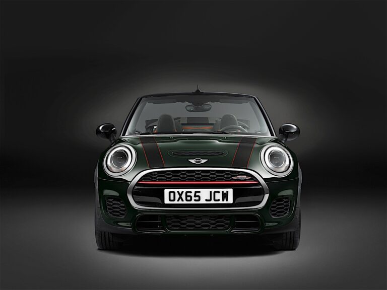 Heksagonalny kontur kratki chłodnicy podkreślony jest przez charakterystyczną ramkę chromowaną, która obejmuje również dolną listwę zderzaka. W połączeniu z opcjonalną zewnętrzną linią chromowaną, dolny wlot powietrza również ma chromowane otoczenie. W modelach MINI Cooper Convertible i MINI Cooper D Convertible, żebra kratki chłodnicy oraz dolna listwa zderzaka, która pełni funkcję uchwytu na tablicę rejestracyjną, są wykończone na wysoki połysk w kolorze czarnym. Sportowy wygląd nowego MINI Cooper S Convertible podkreślony jest dodatkowym otworem w pokrywie silnika i kanałami powietrznymi w dolnym wlocie powietrza. Ponadto chromowane żebro kratki chłodnicy nosi czerwony znaczek „S”, co jest odzwierciedlone w elementach skrzydeł.