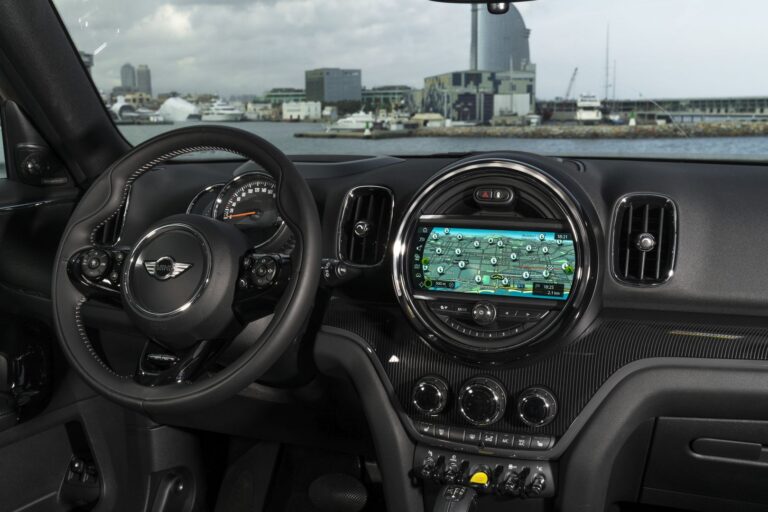 Standardowe wyposażenie nowego MINI Countryman obejmuje Radio MINI Boost z wyświetlaczem czteroliniowym w centralnym instrumencie oraz funkcję telefonu z zestawem głośnomówiącym Bluetooth. Opcje obejmują Radio MINI Visual Boost z 6,5-calowym wyświetlaczem kolorowym, system hi-fi Harman Kardon, system nawigacji MINI i profesjonalny system nawigacji MINI. Funkcje pakietu Wired, w tym profesjonalny system nawigacji MINI, obejmują nie tylko kontroler dotykowy na konsoli centralnej, ale także 8,8-calowy wyświetlacz kolorowy w centralnym instrumencie z nową grafiką. Jest również ekranem dotykowym, co pozwala na wybieranie i dostosowywanie funkcji jednym dotknięciem palca.