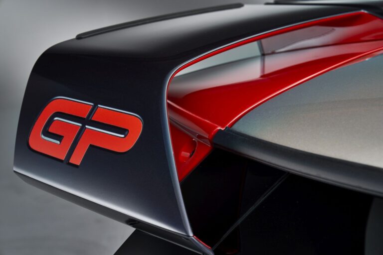 Purystyczny charakter nowego MINI John Cooper Works GP, nastawiony na maksymalną wydajność, jest dodatkowo podkreślany precyzyjnie zastosowanymi akcentami projektowymi. Wyłącznie ekskluzywne wykończenie w kolorze Racing Grey metallic jest dostępne dla malowania nadwozia. Tymczasem dach i osłony lusterek zewnętrznych są wykończone w kontrastowym kolorze Melting Silver metallic. Podobnie jak zderzak przedni, zderzak tylny z zintegrowanymi tylnymi światłami przeciwmgielnymi ma wyraźne kształty. Poprzeczka w heksagonalnym grillu chłodnicy, wstawki w dolnym wlocie powietrza oraz wewnętrzna część spojlera dachowego zakończone są w błyszczącym kolorze Chili Red. Tymczasem logo GP z przodu i z tyłu, na zewnętrznych bokach spojlera dachowego oraz na listwach progowych, a także folie nad progami wykonane są w stylizowanym „GP” w kolorze Rosso Red metallic matt.