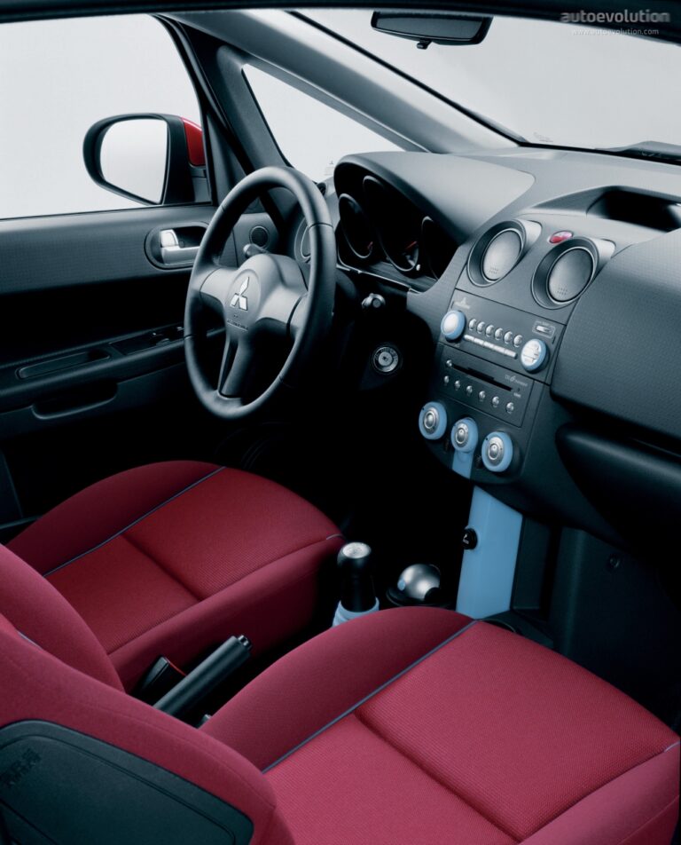 Odeszły jasne beżowe tkaniny, drewniane akcenty i przednie ławki (CVT w Japonii) z japońskiego rynku Colt, na rzecz ciemniejszych odcieni i przezroczystych materiałów. Fotele kubełkowe dla lepszego wsparcia podczas jazdy w europejskich warunkach były także podyktowane wyborem manualnej skrzyni biegów lub AMT dla Europy. W tym przypadku, krótka dźwignia biegów jest mocno osadzona w podłodze, co jest odpowiednie dla samochodu dla kierowcy.