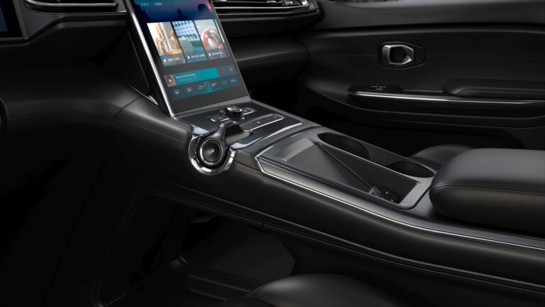 Wnętrze pomieściło pięciu dorosłych pasażerów. Dzięki braku tunelu środkowego, płaska podłoga zapewniała dobre miejsce na nogi dla trzech pasażerów z tyłu. Między przednimi pasażerami umieszczono wysoką i szeroką konsolę centralną z dużymi schowkami. Większość centralnego panelu pokryta była ekranem dotykowym do jednostki infotainment, z kilkoma fizycznymi przyciskami u dołu.