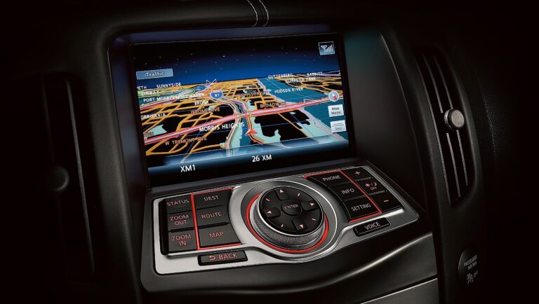 Wnętrze 370Z było małe i przytulne, oferując dużo miejsca na nogi i głowę dla pasażerów z przodu. Deska rozdzielcza miała prosty i przejrzysty układ, a w centralnej części znajdował się przyzwoity schowek.