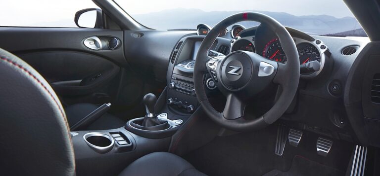 Wewnątrz, kierowca skoncentrowane wnętrze Nissan 370Z Nismo obejmuje fotele z logo Nismo wykończone czarną i czerwoną tkaniną oraz czerwonymi przeszyciami, obrotomierz Nismo, kierownicę z Alcantary z czerwonymi przeszyciami równoległymi, gładką gałkę zmiany biegów pokrytą skórą oraz pedały wykończone aluminium. Specjalna tabliczka autentyczności, umieszczona na pionowej panelu nad konsolą, jest przyporządkowana każdemu Nissan 370Z Nismo, identyfikując jego unikalny numer seryjny i oznaczenie roczne.