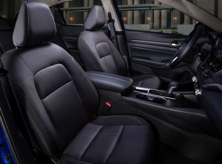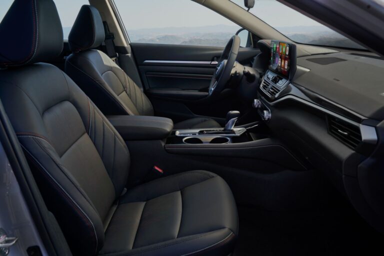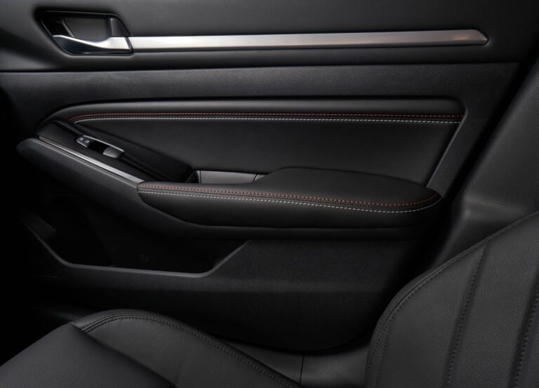 Wnętrze Nissana Altima 2023 oferuje niemal luksusowe odczucia zarówno w designie, jak i w materiałach – w tym poprawione wykończenia deski rozdzielczej oraz nowy projekt materiału wnętrza z podwójnym przeszyciem dla modeli SR. Oferuje również wysoki poziom wygody i funkcji łączności – w tym dostępny 7-calowy wyświetlacz Advanced Drive-AssistTM, fotel inspirowany NASA w stylu Zero Gravity z podwójną gęstością pianki i wsparciem bocznym, dostępne siedzenia wykończone skórą oraz dostępne 8-stopniowe elektrycznie regulowane siedzenie kierowcy.
