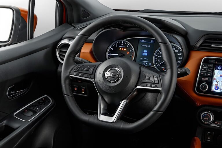 Połączone z klasyczną regulacją siedzenia kierowcy w przód/tył, oznacza to, że kierowca mający 2,03 metra (6 stóp 8 cali) może wygodnie siedzieć za kierownicą. Nissan wie, że to prawda, ponieważ ma takiego w zespole rozwoju Micry! Podobnie, jedna z pracownic ma tylko 1,52 metra (4 stopy 11 cali), której również doskonale pasuje nowa Micra.