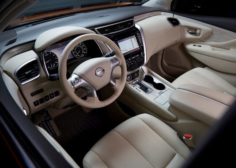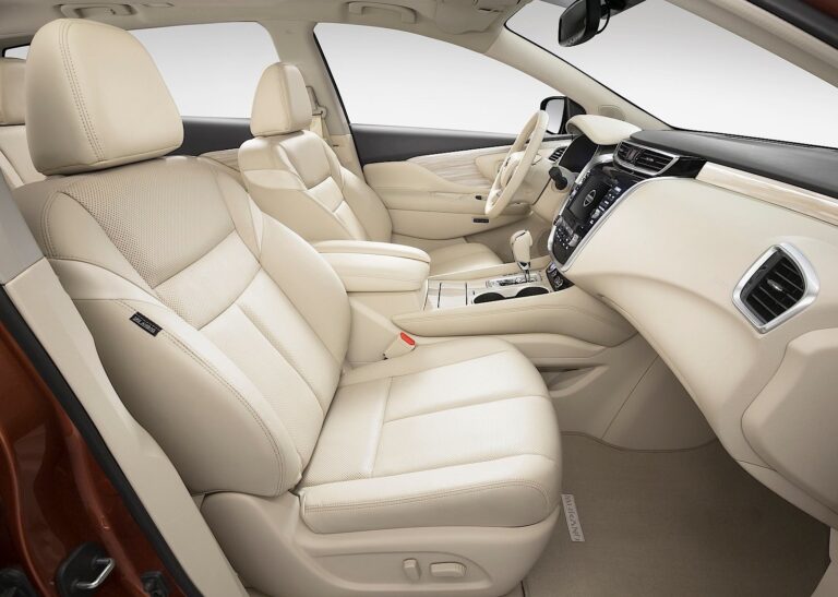 Inne funkcje wewnętrzne to standardowa automatyczna kontrola temperatury w dwóch strefach oraz Nissan Intelligent Key® z uruchamianiem przyciskiem, a także dostępne skórzane fotele, podgrzewana kierownica, pamięć pozycji kierownicy, pamięć fotela kierowcy i lusterka zewnętrznego, elektrycznie składane tylne fotele oraz zdalne uruchamianie silnika z inteligentną kontrolą klimatyzacji.