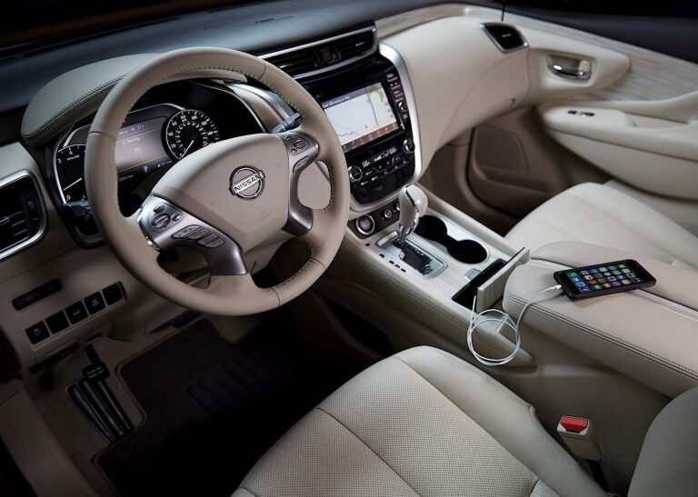 Rozmowa między pasażerami z przodu i z tyłu jest zachęcana przez „aleję komunikacyjną” nowego Murano, stworzoną przez szeroki, niski środkowy konsol. Konsola zawiera również przegrodę dla smartfona pasażerów tylnych. Dostępny jest również port USB dla tylnych siedzeń, który umożliwia kontrolę muzyki i wyświetlania oraz liczne przestrzenie do przechowywania w całym wnętrzu.