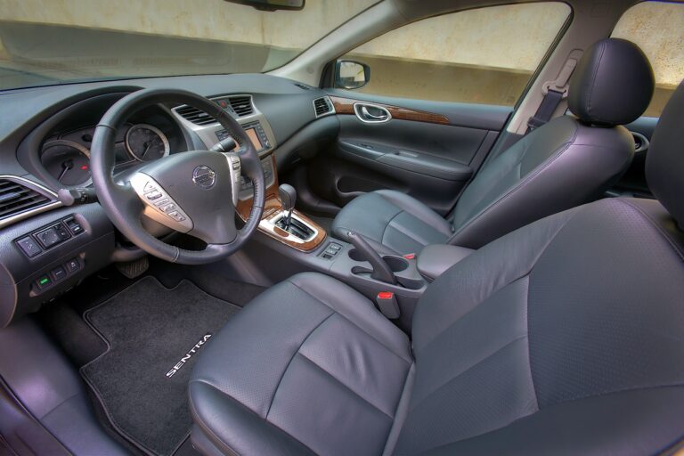 Dodatkowe wyposażenie Sentra SL obejmuje skórzaną kierownicę oraz gałkę zmiany biegów, wykończenie w odcieniu klonu, podwójną automatyczną kontrolę temperatury (ATC), system monitorowania ciśnienia w oponach (TPMS) z funkcją Easy Fill Tire Alert i wiele więcej.