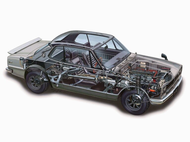 Jej wygląd był prosty jak na tamte czasy. Była to limuzyna w układzie trzech pudełek z czterema okrągłymi reflektorami. Nic szczególnego nie wskazywało na to, że pod maską kryje się prawdziwy silnik wyścigowy. W 1971 roku Nissan postanowił wprowadzić wersję coupe dla czterodrzwiowego Skyline. Coupe miało nieco inny styl, z opadającym dachem i szerszymi słupkami C.
