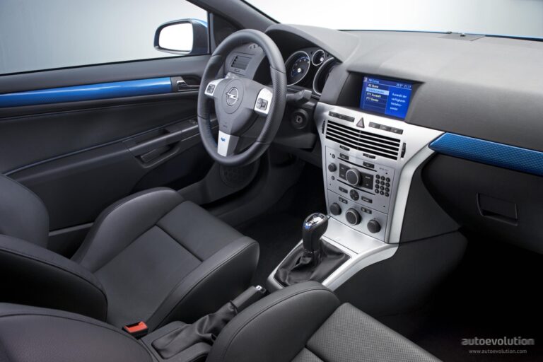 Sportowy klimat kontynuowano wewnątrz, gdzie znalazły się niebieskie akcenty OPC na desce rozdzielczej, panelach drzwi oraz przednich fotelach sportowych Recaro. Dodatkowo, te same trzy litery umieszczono na kierownicy oraz w obrębie tachometru. Aby jeszcze bardziej podkreślić sportowy wygląd, Opel dodał zestaw aluminiowych pedałów.