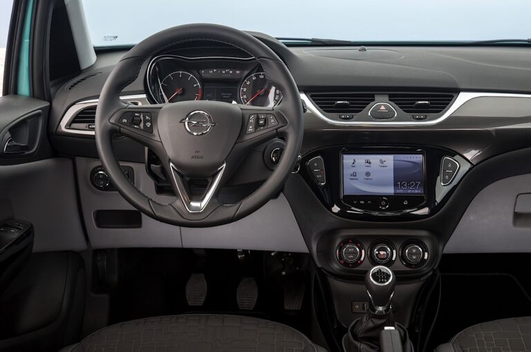 Starannie zaprojektowana kabina nowej Corsy koncentruje się na przyciągającym wzrok centrum sterowania kierowcy, którego panel wskaźników zaprojektowano zgodnie z poziomymi liniami, które optycznie zwiększają przestronność wnętrza. System IntelliLink z 7-calowym kolorowym ekranem dotykowym znajduje się idealnie na centralnej konsoli, blisko dźwigni zmiany biegów. Umożliwia to szybką i naturalną zmianę z kontrolki skrzyni biegów na ekran dotykowy. Nowoczesny system informacyjno-rozrywkowy nowej Corsy oferuje najlepsze możliwości łączności, jest kompatybilny z urządzeniami Apple i Android oraz może być obsługiwany za pomocą poleceń głosowych. Można również korzystać z Bluetooth i Siri Eyes Free. Dostępnych jest kilka aplikacji, takich jak BringGo do nawigacji, Stitcher i TuneIn do radia internetowego i podcastów, a także praktyczna stacja parkingowa i ładująca FlexDock dla smartfonów.