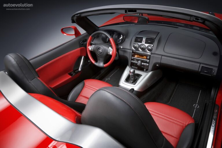 Ostro zarysowane linie w połączeniu z napiętymi powierzchniami nadają nowemu Oplowi GT wyrazisty, dynamiczny wygląd. Jego mocny przód dominuje wyrazista linia nadkola, odważny chromowany poprzeczny pasek z wbudowanym logo Opla, wydłużona maska z typowym dla marki środkiem, wentylacja wykończona chromem oraz odważne reflektory 3D, które głęboko wkomponowane są w boczne panele. Szczególnie sportowe cechy GT obejmują długie wloty powietrza w masce, żłobienia w przednich nadkolach o dynamicznych, typowo Opelowskich poziomych konturach – jak w Antara – podwójny układ wydechowy i podwójne wloty powietrza za zagłówkami, które przypominają wzory z historii roadsterów i sportów motorowych. 18-calowe aluminiowe koła w nowym pięcioramiennym wzorze wypełniają nadkola i podkreślają roadsterowy charakter pojazdu, podobnie jak materiałowy dach, który całkowicie znika pod pokrywą, by zapewnić przyjemność z jazdy bez dachu.