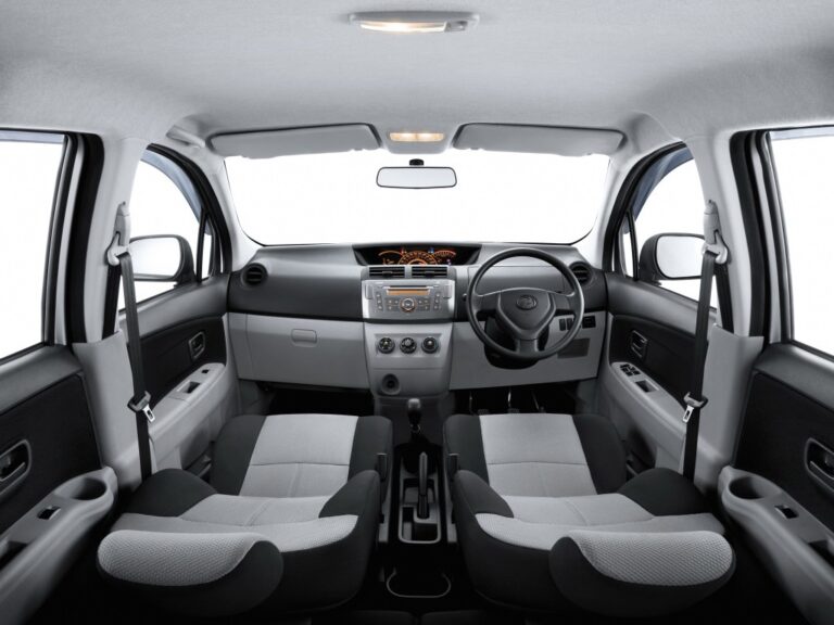 Wnętrze Alzy oferowało miejsce dla maksymalnie siedmiu pasażerów z dzieloną na pół tylną kanapą oraz składaną trzecią linią siedzeń. Dostęp do tylnej linii był utrudniony, ponieważ druga rząd nie składał się w dół; mógł się tylko złożyć, ale nie całkowicie płasko. Z przodu kierowca cieszył się wysoką pozycją siedzącą. Perodua zachowała ten sam kokpit co jej siostrzany model Daihatsu Boon, z centralnie umieszczonym zestawem wskaźników.